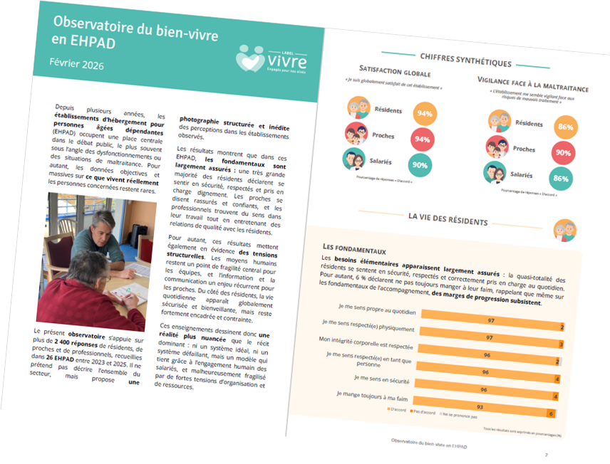 Des données inédites sur le vécu réel des résidents, de leurs proches et des salariés, issues des résultats recueillis entre mars 2023 et décembre 2025 auprès de plus de 2400 personnes interrogées.